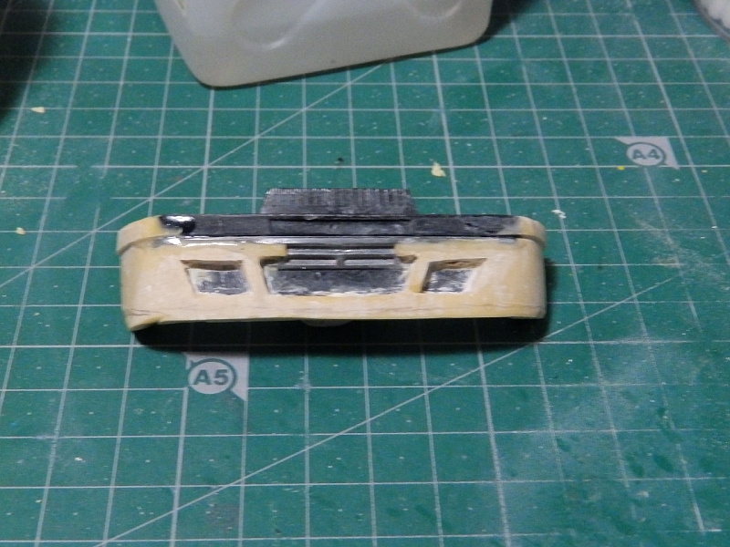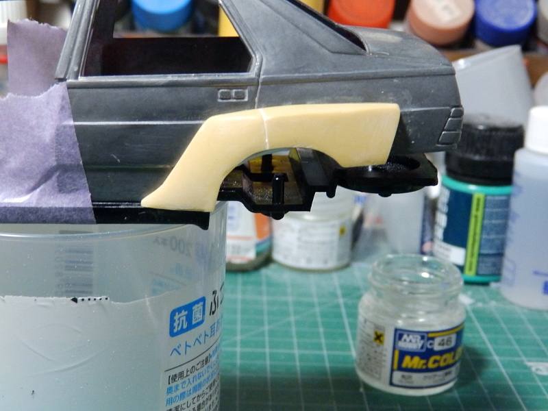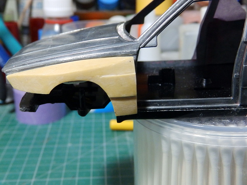 エポパテが硬化したらボディから剥がして整形する。まずはフロントをやって、次、リア。サイドシルか